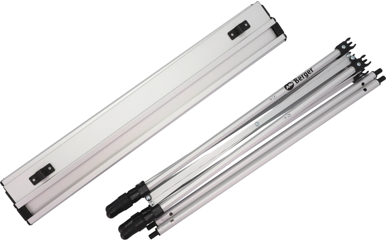 Leichtes Alu-Gestell mit Alu-Rollplatte. Tischbeine sind höhenverstellbar. Lieferung inklusive Packtasche. Der Tisch ist stufenlos Höhenverstellbar von 70 – 83 cm.