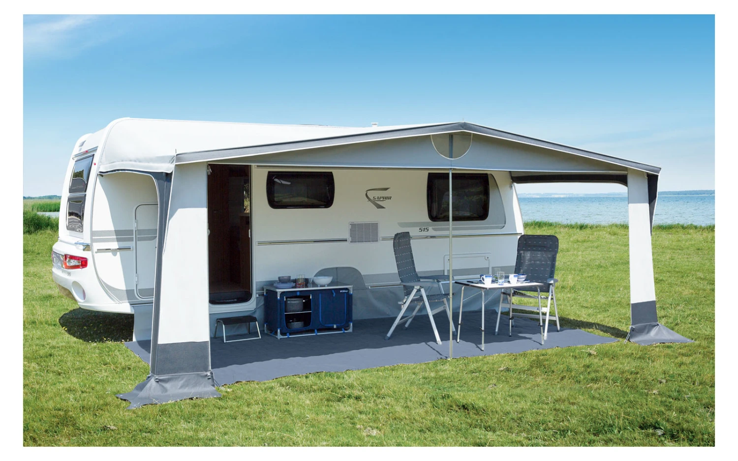 Der Vorzeltteppich hat eine Größe von 300 x 300 cm, eine Fläche von 9 m² und bietet ausreichend Platz für eine Familie oder eine Gruppe von Campinggästen.