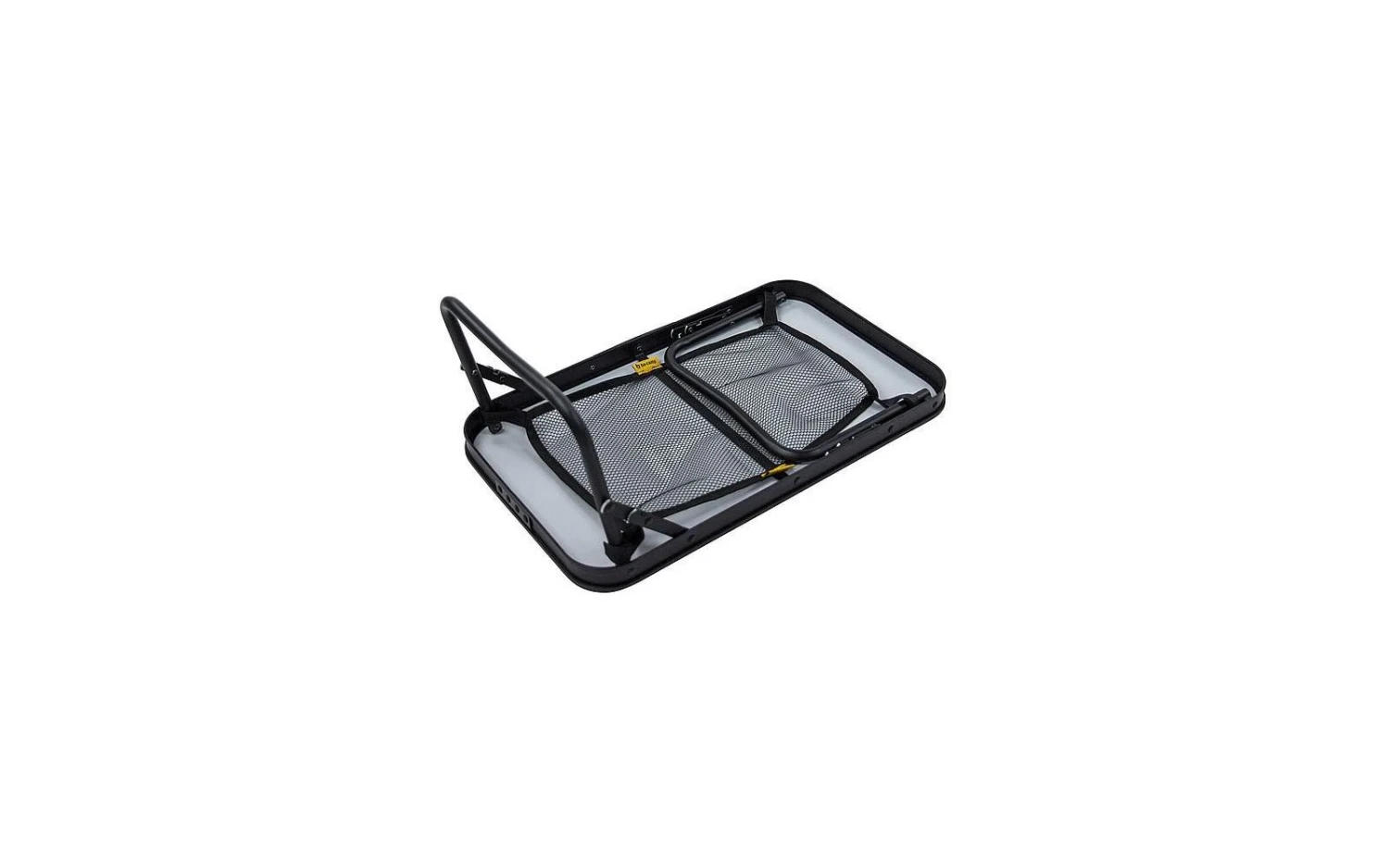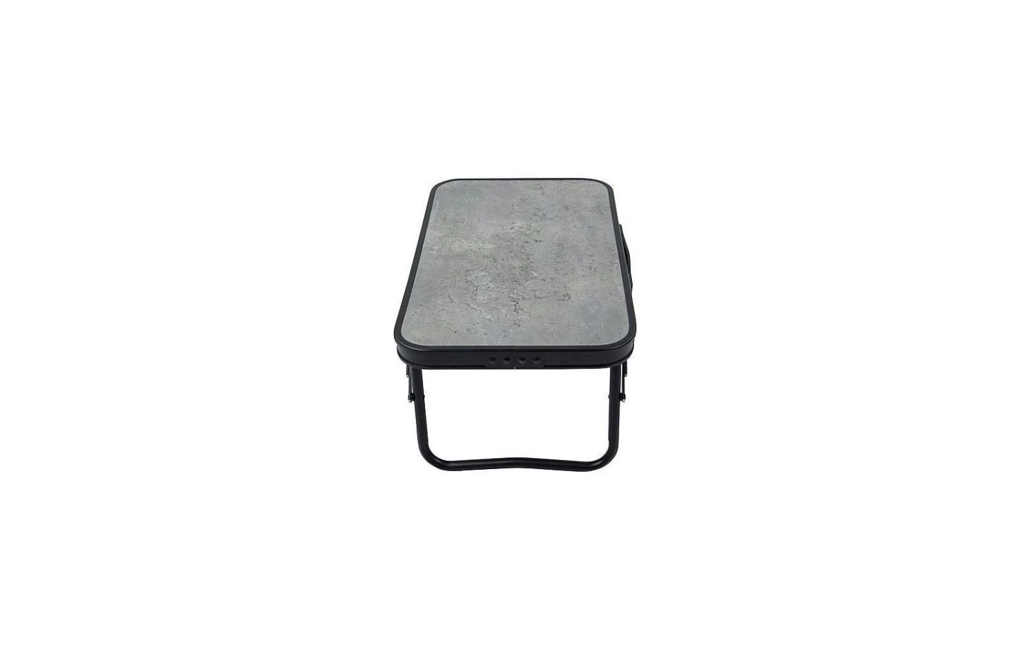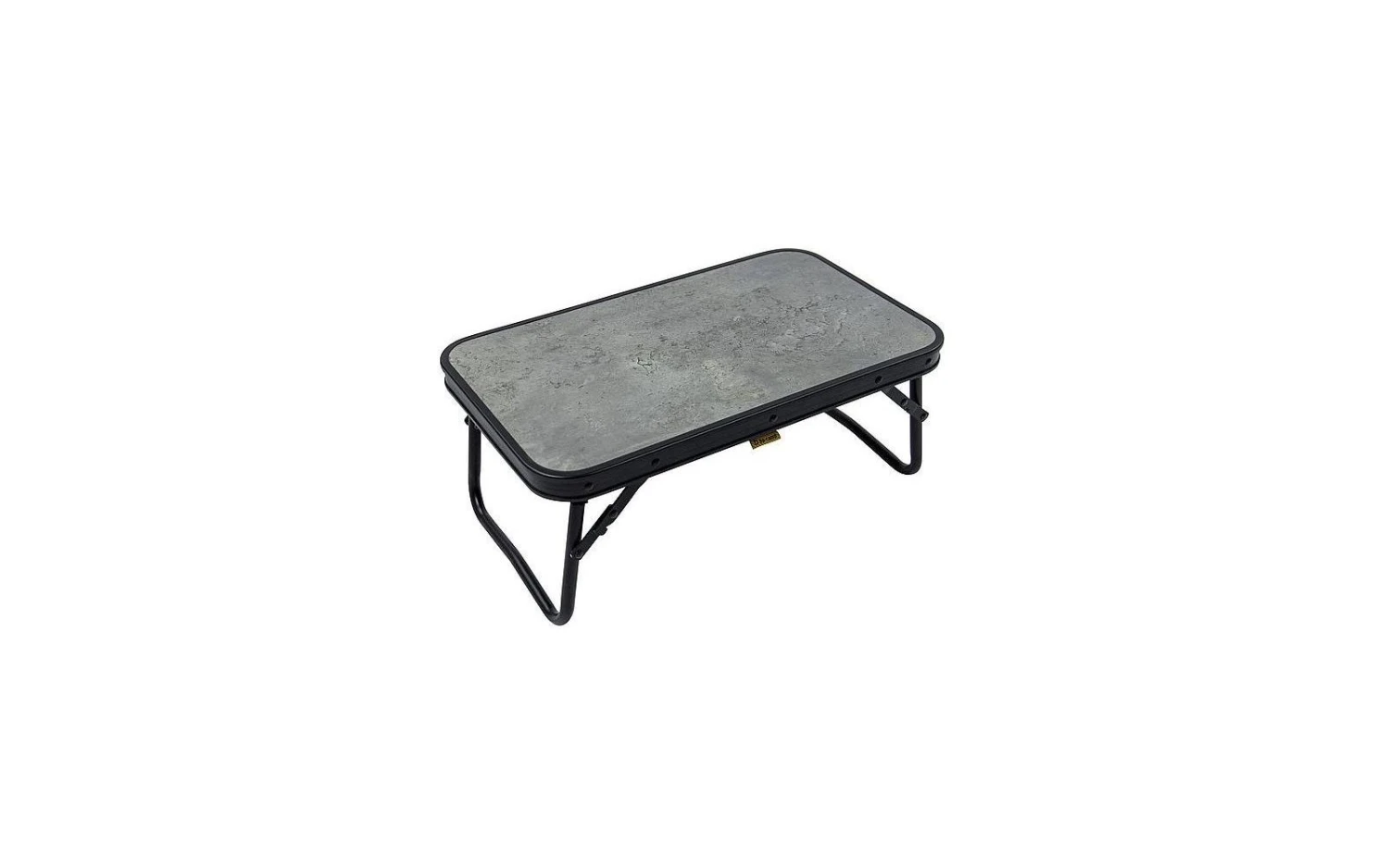 Durch die klappbaren Beine ist der Tisch sehr kompakt zu verstauen. Darüber hinaus ist der Tisch mit einem Netz unter der mitteldichten Tischplatte ausgestattet, um Gegenstände zu verstauen. Kleiner Tisch, ideal als Beistelltisch oder für die jüngsten Camper.