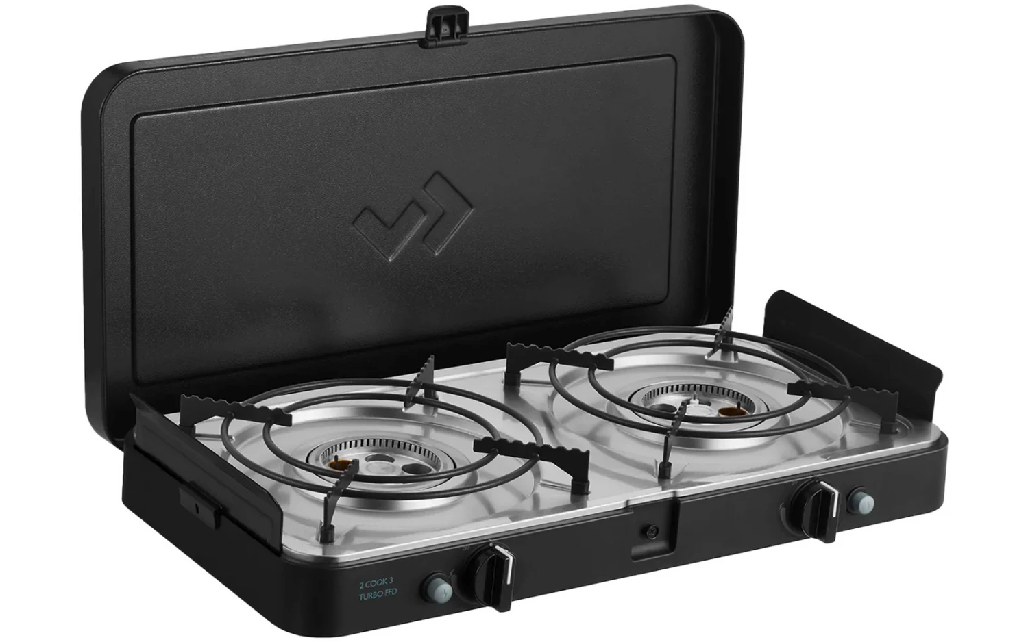 Das einzigartige Design der Turbo-Brenner sorgt für eine stärkere und gezielte Wärmeabgabe. Dies sorgt für eine schnellere Aufheizzeit als bei anderen Kochern und kann die Kochzeit und den Gasverbrauch um bis zu 40 % reduzieren. Die beiden Brenner befinden sich tief im Gerät, was zu einem schlanken Design führt, bei dem die Brenner weniger empfindlich auf Windböen reagieren. Die Brenner arbeiten unabhängig voneinander und haben jeweils einen eigenen Bedienknopf und eine eigene Zündung.