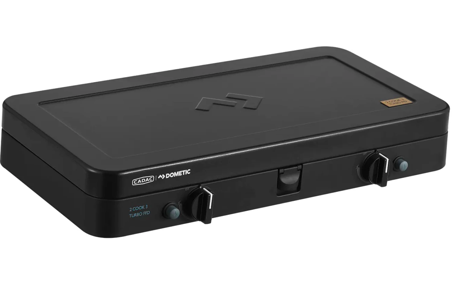 Der 2 Cook 3 Turbo wird serienmäßig mit zwei Topfständern und Windschutzblechen geliefert. Gummifüße sorgen dafür, dass er stabil steht und während des Gebrauchs nicht verrutscht. Nach dem Gebrauch lässt sich der Deckel mit einem praktischen Verschlussclip schließen und in der mitgelieferten, robusten Trage-/Aufbewahrungstasche verstauen.