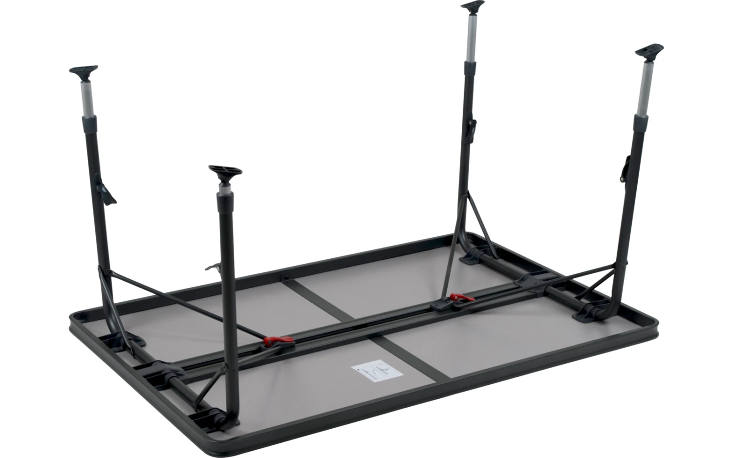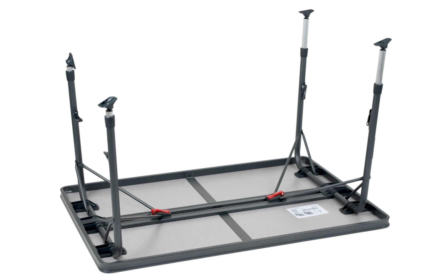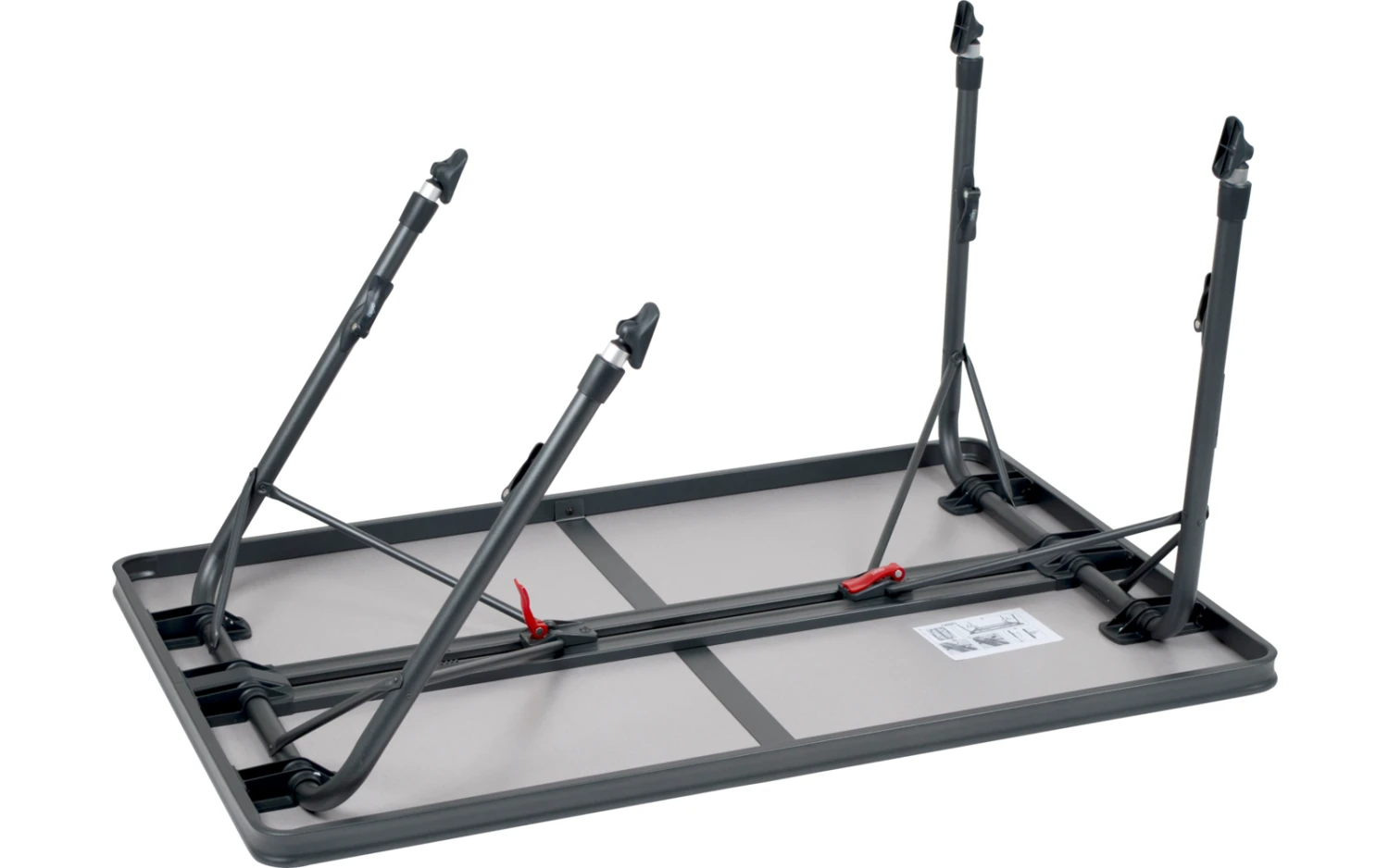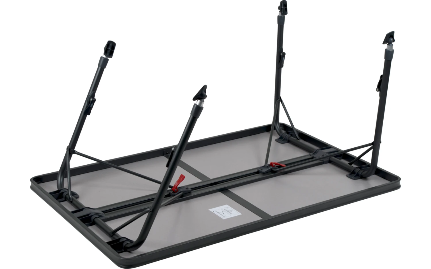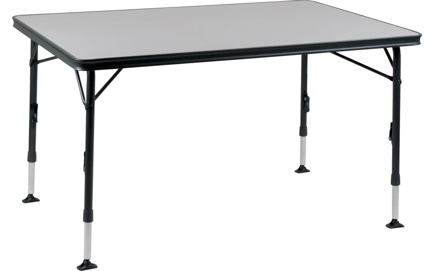 Durch seine einzigartige Konstruktion ist dieser Tisch einfach auf- und zuzuklappen. Die Beine sind nach dem Einklappen sicher in den Aluminiumschienen an der Unterseite der Tischplatte zu befestigen, die wiederum für eine zusätzliche Verstärkung sorgen.Dank hochwertiger Materialien und der hitzebeständigen und wasserfesten Tischplatte, wird eine lange Lebensdauer gewährleistet. Die Beine sorgen für hohe Stabilität durch die dicken und extra verstärkten Rohre. Die Stabilisierungsfüße sorgen für zusätzlichen Halt auf jeder Oberfläche. Dieser Tisch ist durch den Alu-Rahmen leichtgewichtig und leicht zu transportieren.