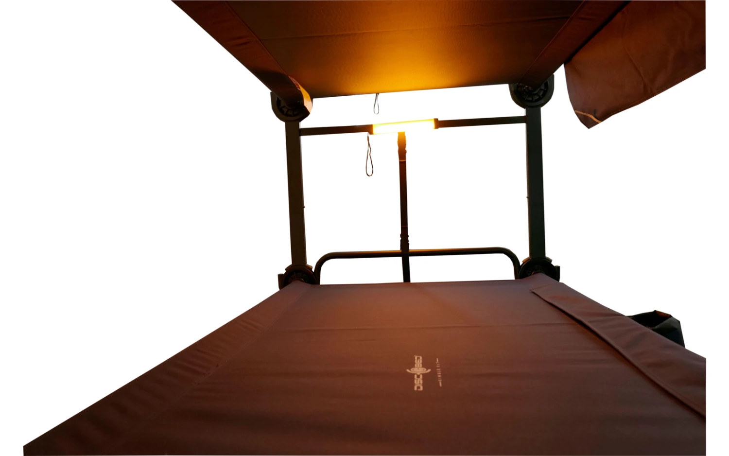 Einzelbett mit Organizer und großzügiger komfortabler Liegefläche 201 * 88cm, belastbar bis zu 227 kg, mit einem weiteren XLT Einzelbett zum Etagenbett und zur Sitzbank umbaubar (benötigte Adapterstücke bereits inklusive); X5 LED-Taschenlampe mit Stableuchte in 5 Lichteinstellungen, 200 Lumen Lichtleistung, Leichtgewicht mit 250 gramm und 2 starken Magneten sowie Haltegrurt für optimale Befestigung, inklusive Stechmückenabwehrlicht und Leselicht, in nur 3 Stunden per USB-Ladekabel (inkl.) aufgeladen, Laufzeit von 6 bis zu 80 Stunden, integrierte Powerbank mit 4.000mAh, IP-65 spritzwassergeschützt und stoßfest; FOOT-PADS 4-er Set für Zeltbodenschutz, verbesserter Stabilität und optimale Verteilung des Gewichtes. (BUNDLE bestehend aus 526780 und 513940).