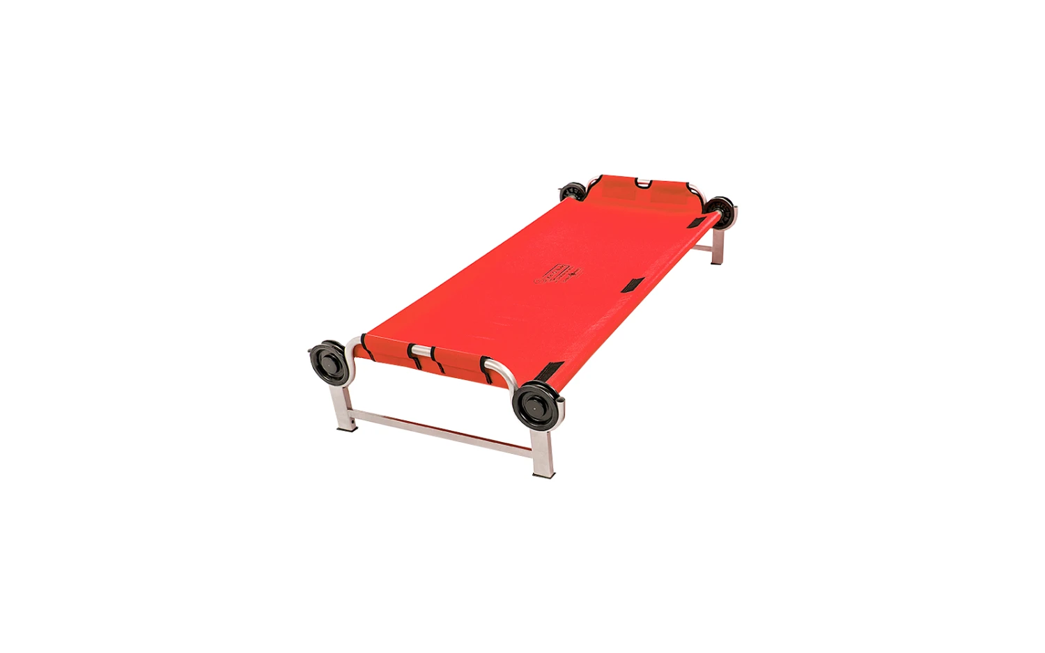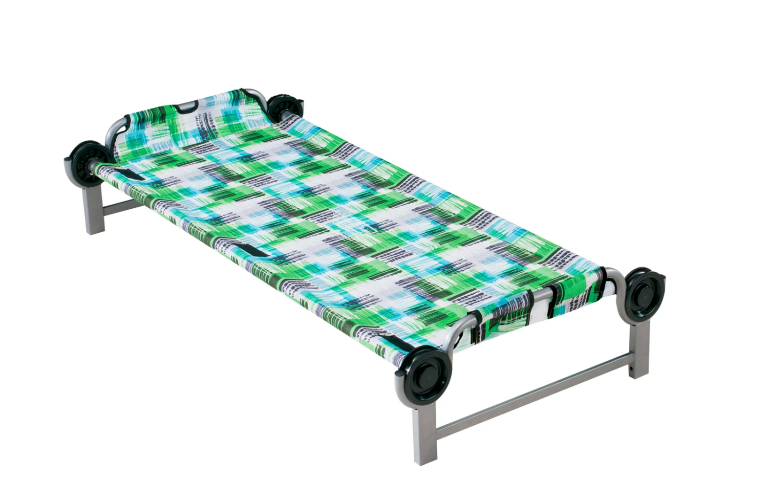Disc-O-Bed Kid-O-Bed ist ein Einzelbett mit geraden Rahmen aus pulverbeschichtetem massivem Stahl und ohne Seitentasche. Das Feldbett ist bis zu 91kg belastbar und wird in einer robusten Tragetasche verstaut.