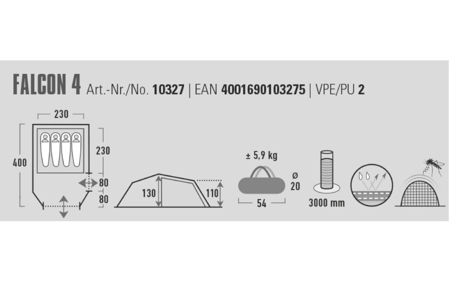 | Zelthöhe | 110 – 130 cm |
