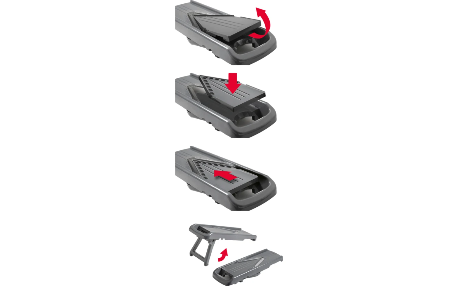 Mit der Metaltex Slice-V Universalreibe kannst du Obst und Gemüse mühelos in unterschiedlichste Formen bringen – auch harte Sorten wie Kürbis oder Süßkartoffel lassen sich präzise schneiden. Die fünf auswechselbaren Klingen ermöglichen dir dünne, mittlere oder dicke Scheiben sowie feine und grobe Streifen. Die V-förmige Klinge sorgt für gleichmäßige Ergebnisse, während Fingerschutz und Klingenschutz für Sicherheit sorgen. Dank klappbarem Fuß steht die Reibe rutschfest und lässt sich nach dem Einsatz platzsparend verstauen. Die Einsätze kannst du direkt im Reibehalter sicher aufbewahren.