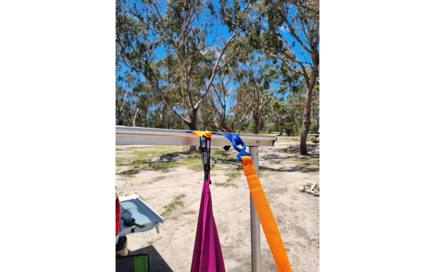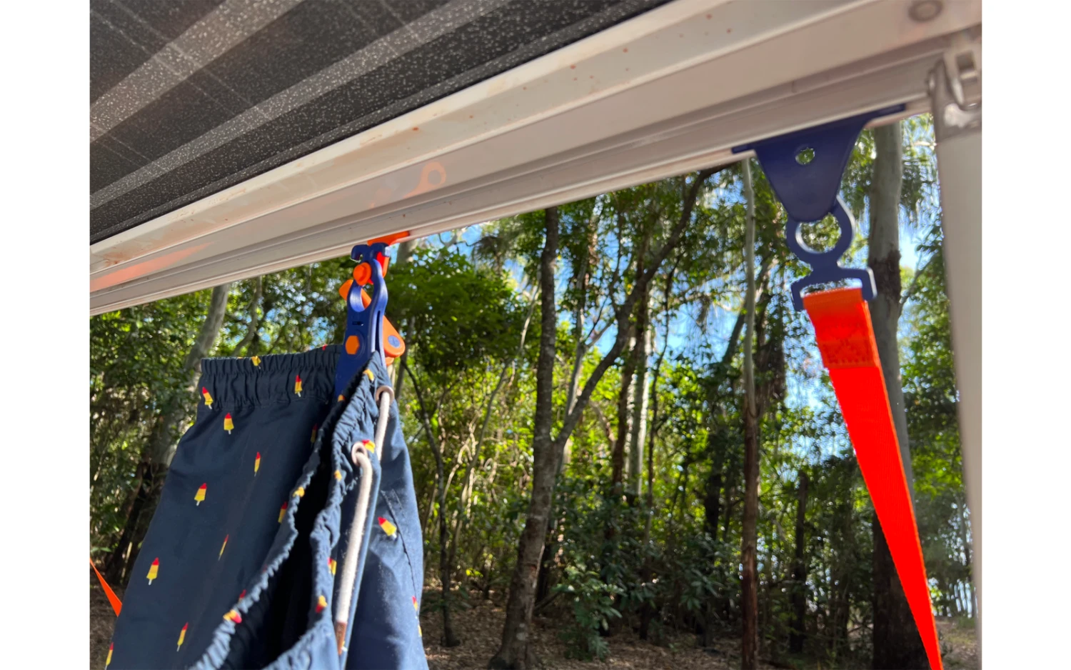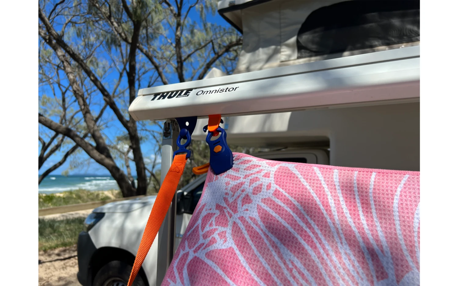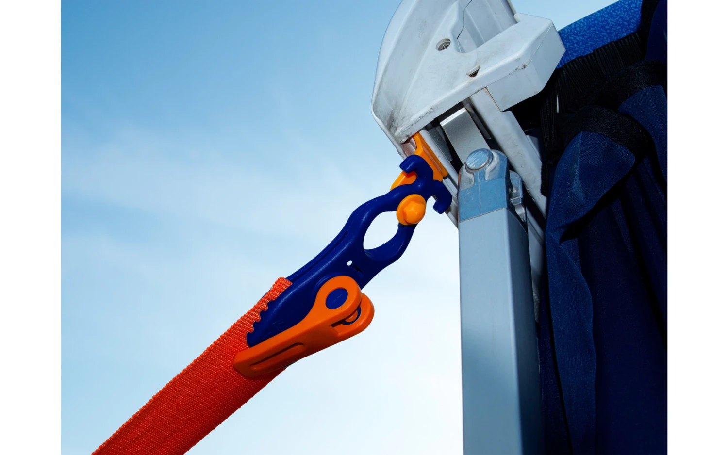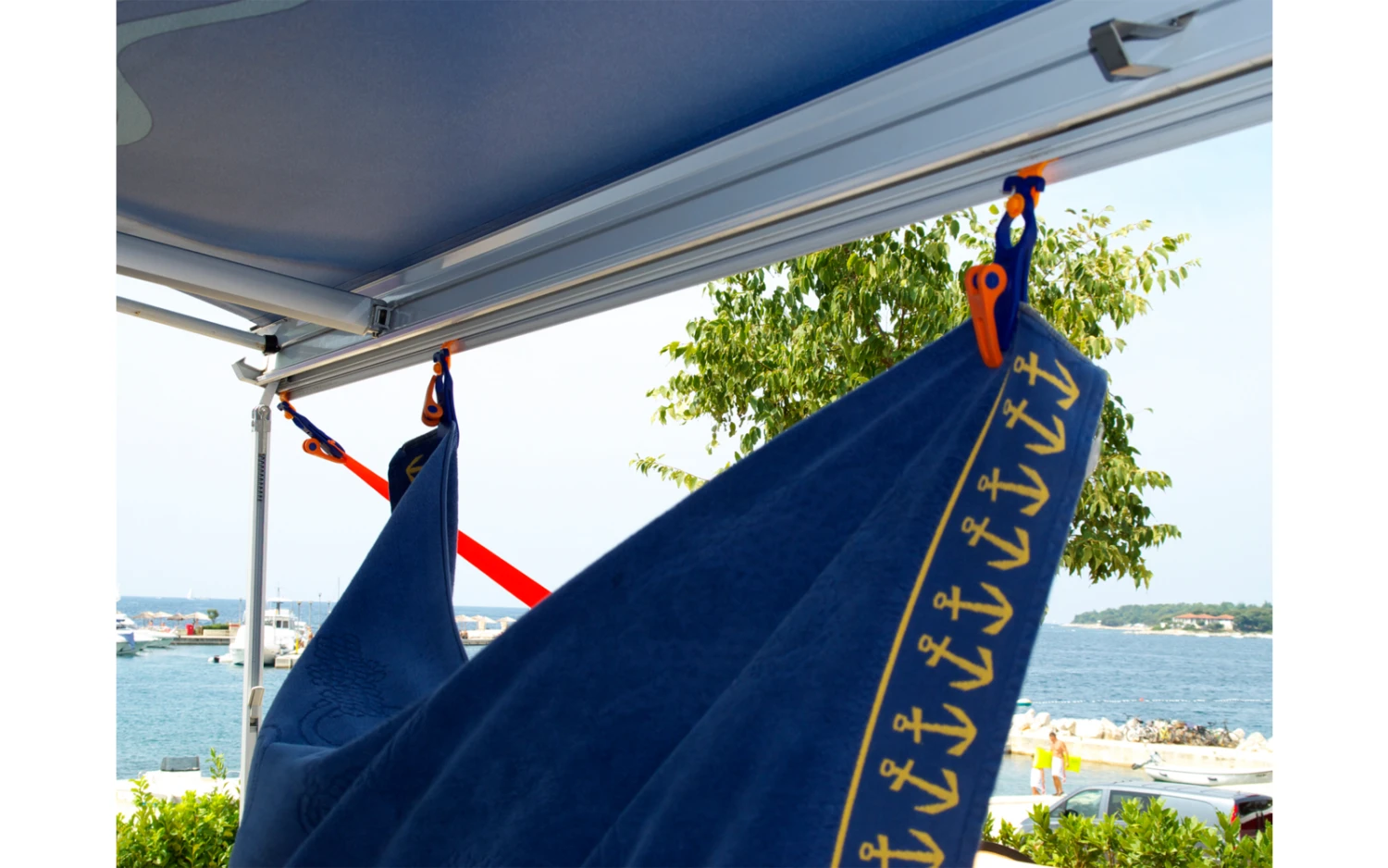 Der PP Croc-Adapter lässt sich sowohl in Markisen-, als auch in Caravan-Kederschienen einziehen. Zusammen mit dem Crocodile Peggy kann z.B. universell ein Spanngurt und Schattierungen angebracht werden.