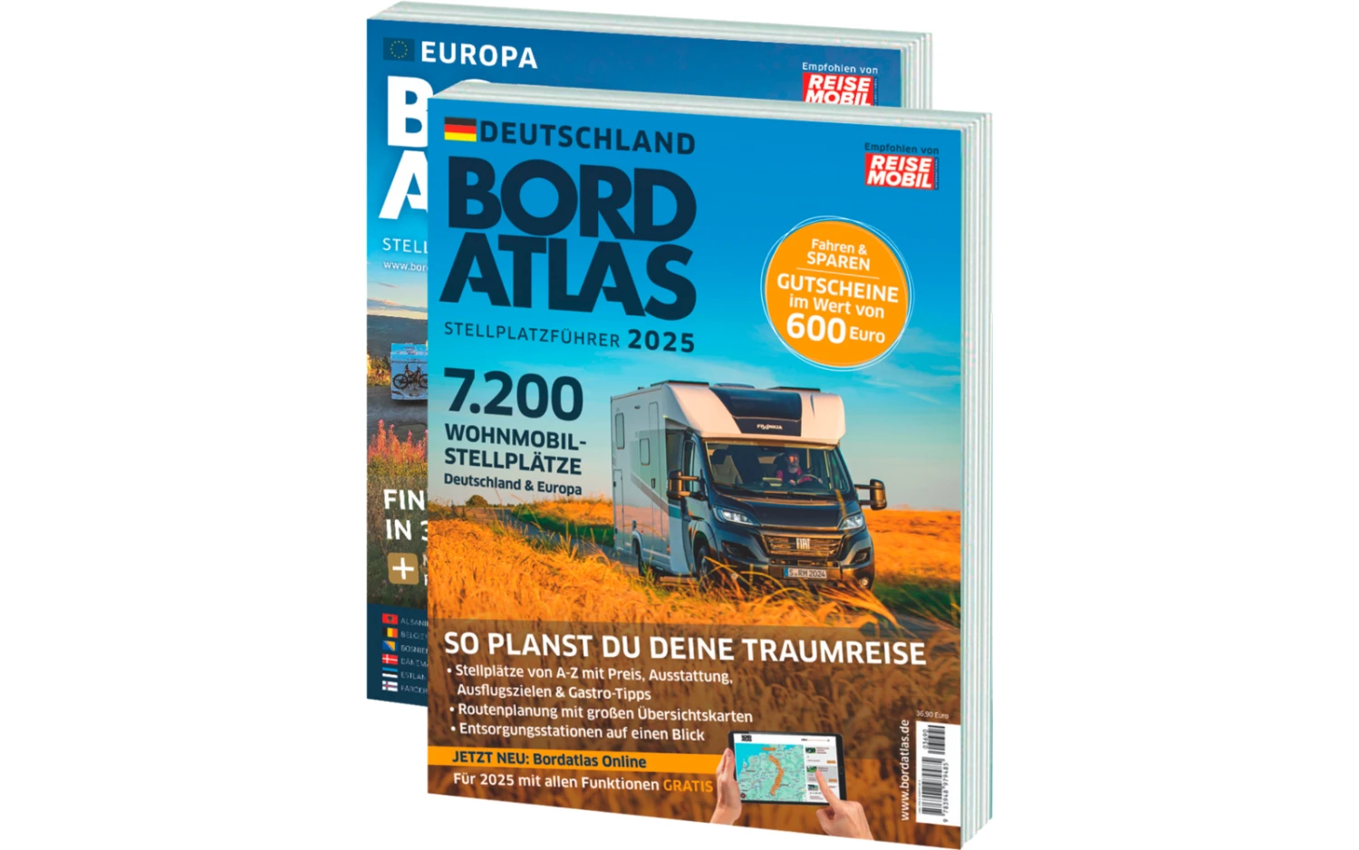 - 1 x Bordatlas Stellplatzführer 2025, Deutschland und Europa (2 Bände)
