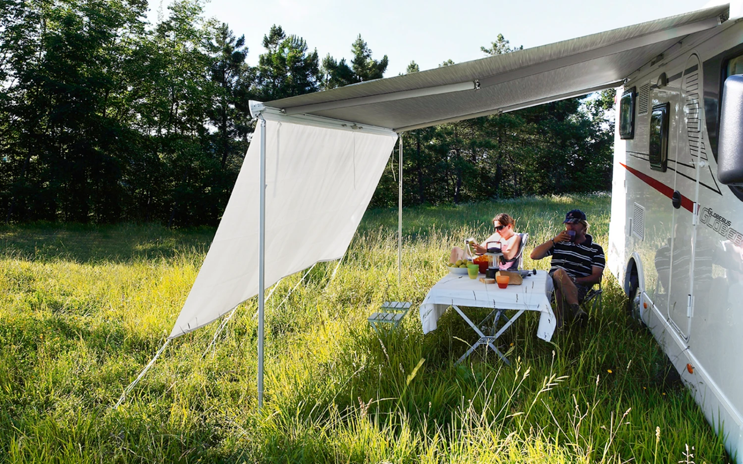 Wind- und wasserdicht. Lichtundurchlässig. Wird in das Frontprofil geschoben. Passt zu allen Thule Omnistor Markisen.